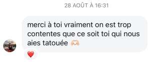 Intéressée par l’univers du tatouage, ma première expérience m’a convaincue que je voulais en faire mon métier.